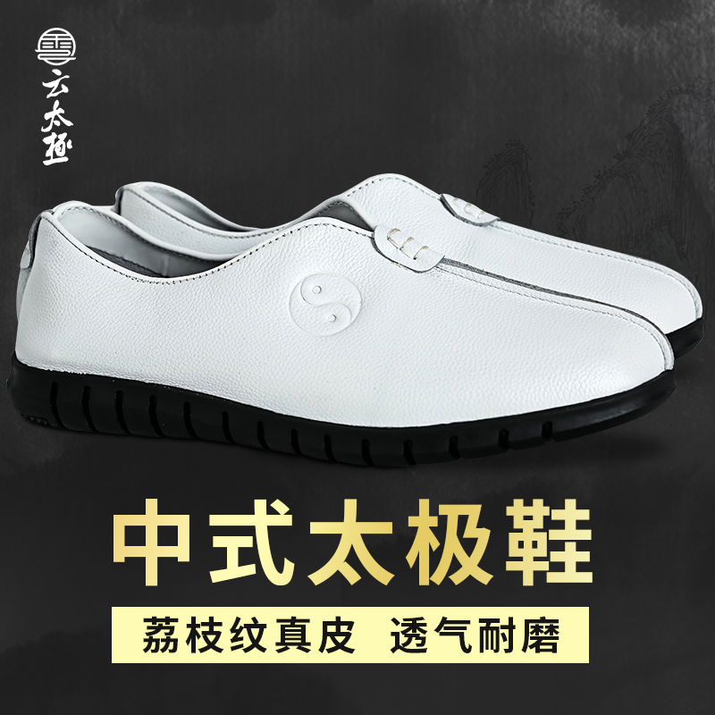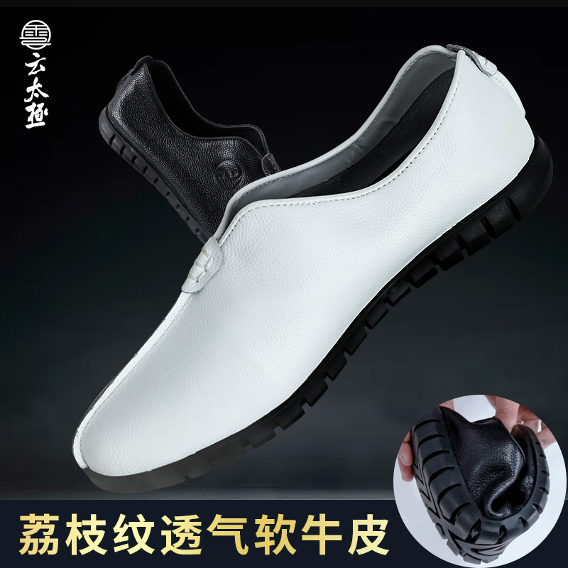 Cloud Tai Chi Chen Jiagou Genuine Leather Tai Chi Shoes Soft Cow Leather Martial Arts Practice Shoe Wear and Men's Soft Bottom Performance Competition