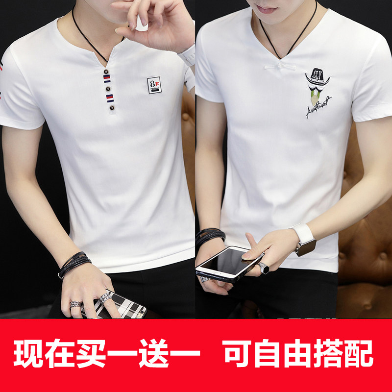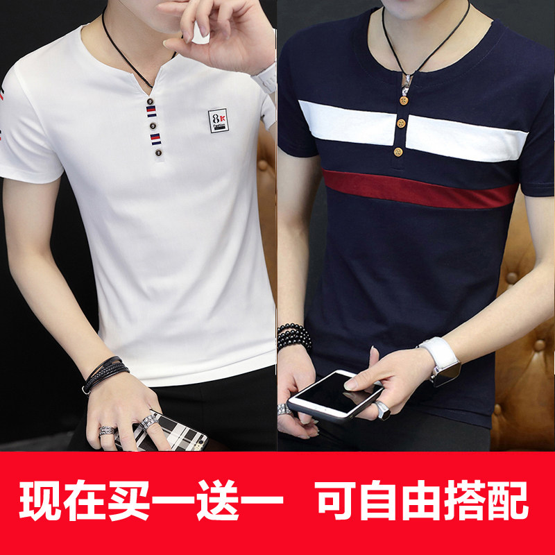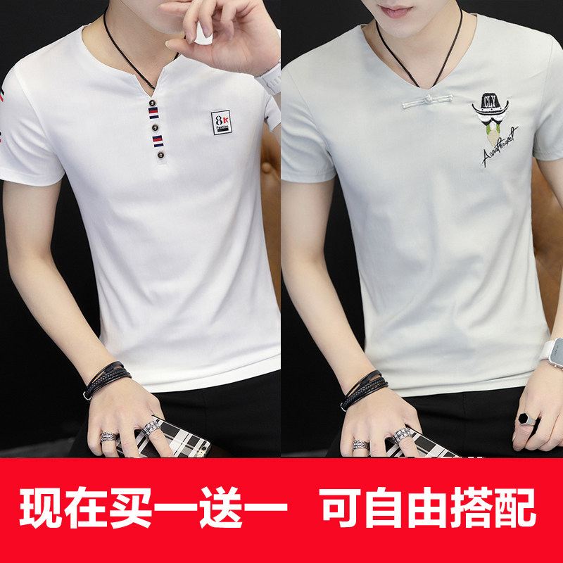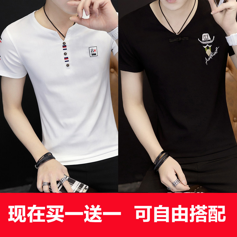 2022 Summer new men's short sleeve T-shirt V collar half sleeve Korean version trendy Thunder T-shirt Chaude summer loaded with clothes