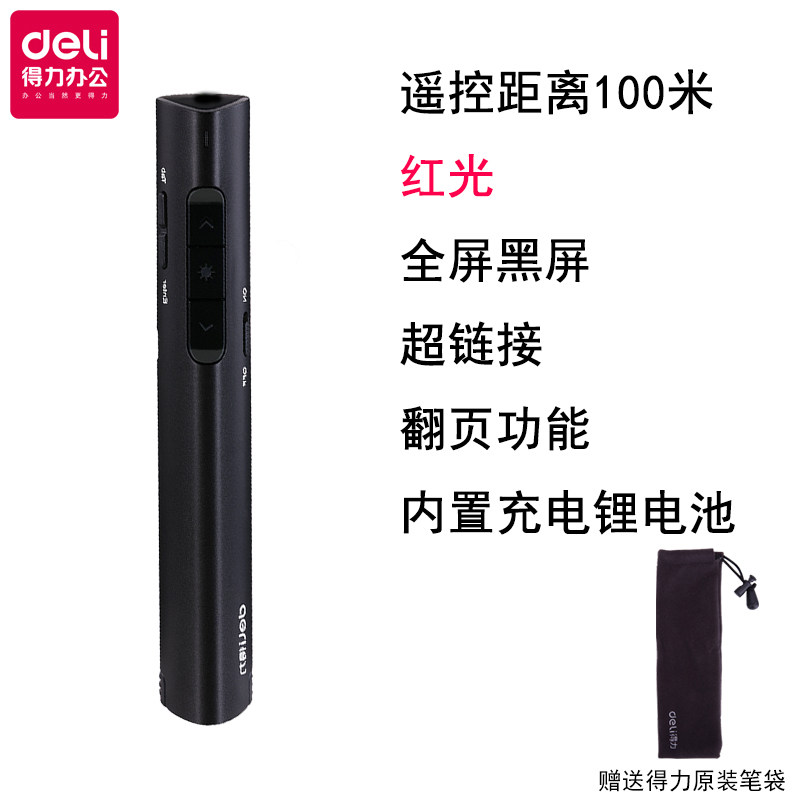 Deli 2801 page turning pen ppt page turning pen laser projection presentation pen remote control pen electronic pen teaching whip page turner rechargeable lithium battery full screen black screen hyperlink window toggle 100 meters red light