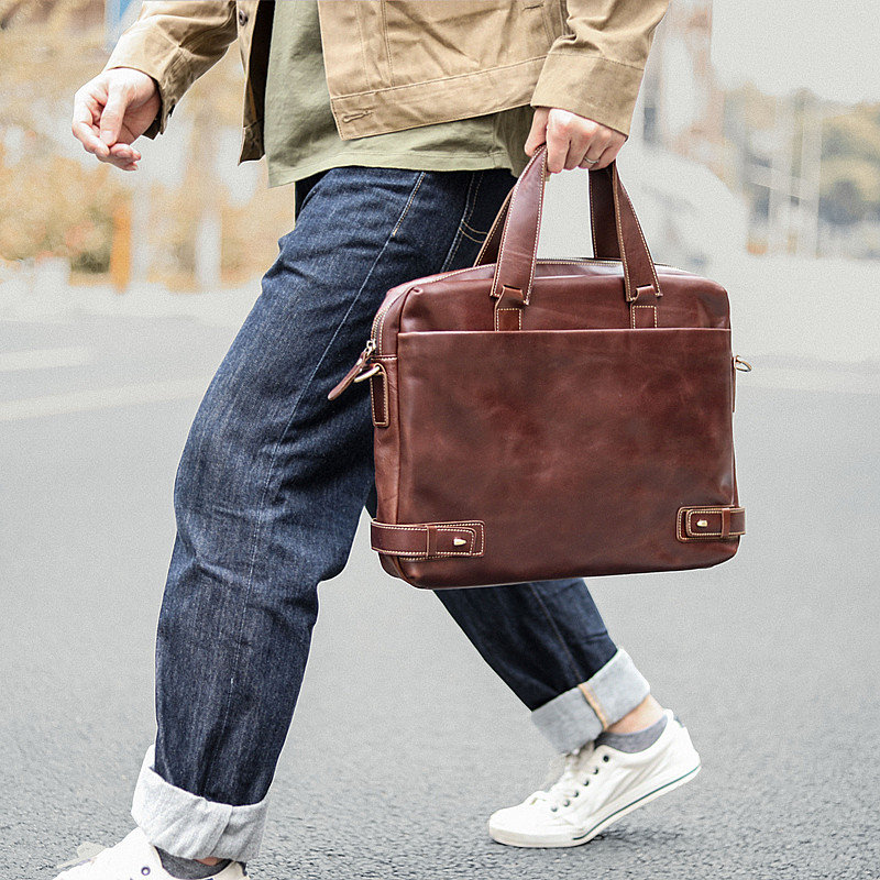 2023 new Korean men's handbag leather bull leather business briefcase with handbag with quality skinned man bag