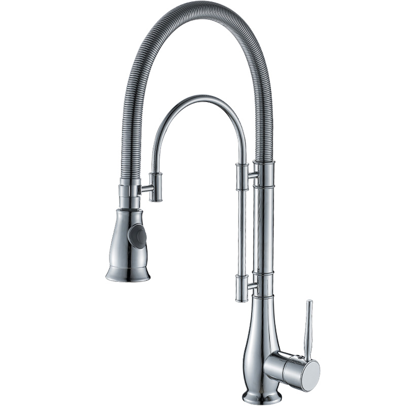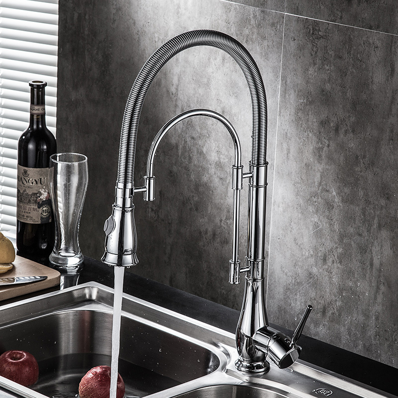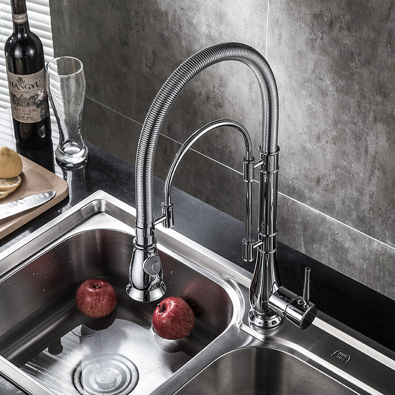 American all copper high pressure wire drawing spring kitchen faucet Pull-out hot and cold water tank washing basin Rotating shower
