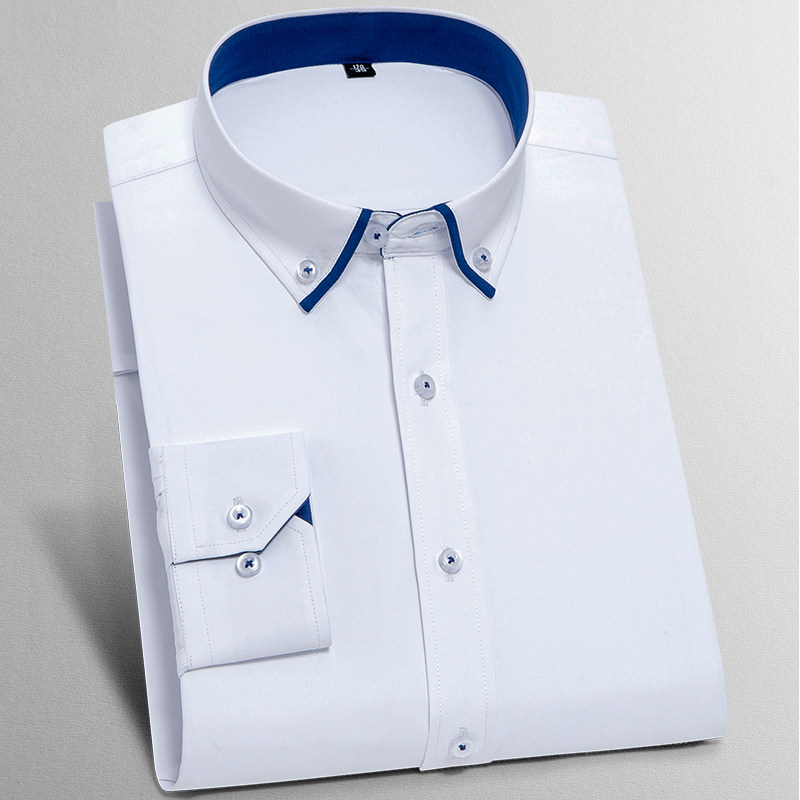 Spring slim fit long sleeve shirt male business career fixture is being loaded with pure blue shirt male worker to make an inch fir for work
