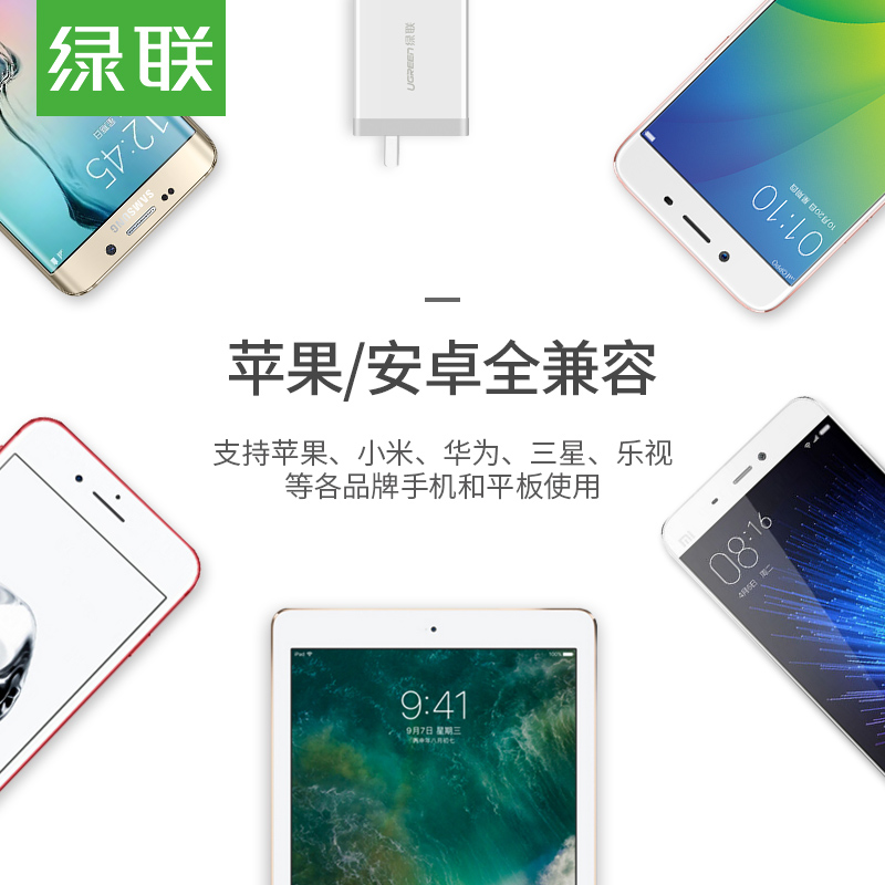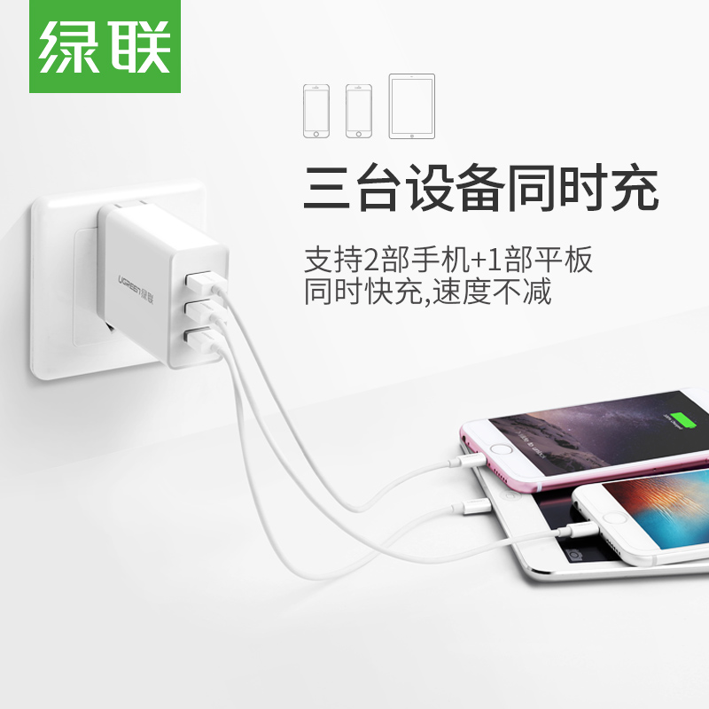 Green Union Multi-Port USB Charger for Apple Android Phone Xiaomi Huawei Universal Fast Three-hole Plug