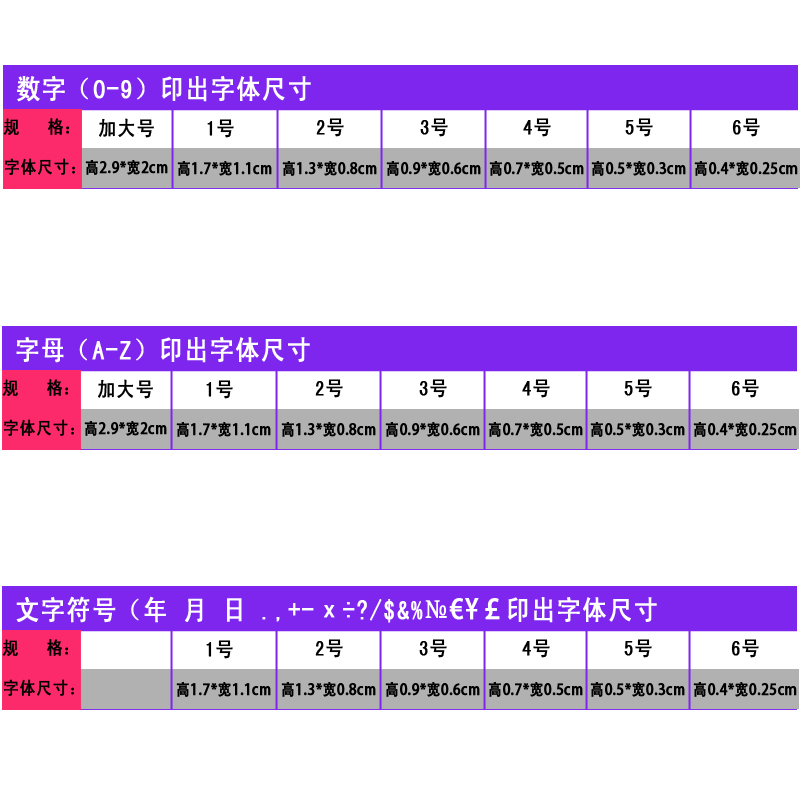 Digital Date Seal Size Number Live Word Print Price List Price number English letter chapter 0-9 Assembly number