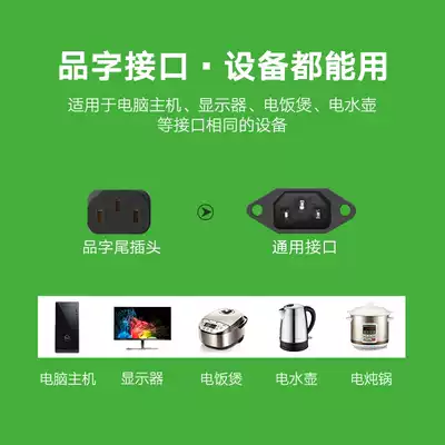 Green power cord three-hole display screen Rice Pot Pot Kettle computer desktop main case universal character plug