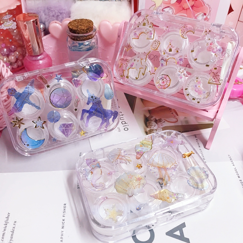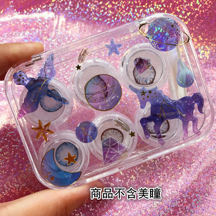 Contact lens box three pack cute portable transparent personality contact lens color contact lens companion box multi-pack