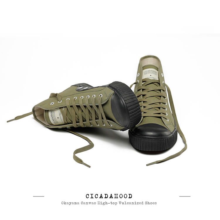 Cicadahood Japan Okayama canvas high cylinder vulcanised shoe Army Green Black Sail Cloth Shoes Emancipation Shoes
