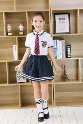 Children's summer British style short-sleeved primary school students college style school uniform Kindergarten boys and girls graduation suit class uniform