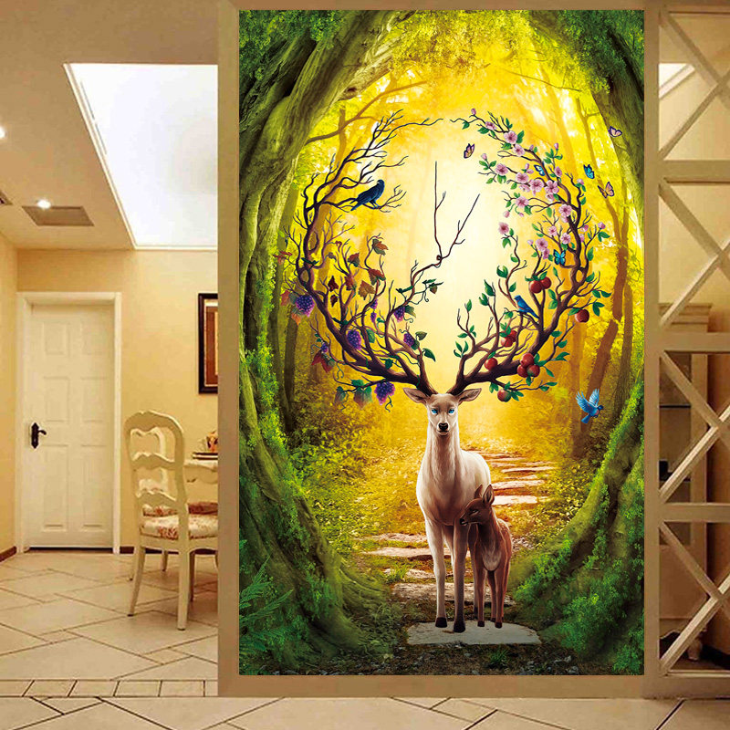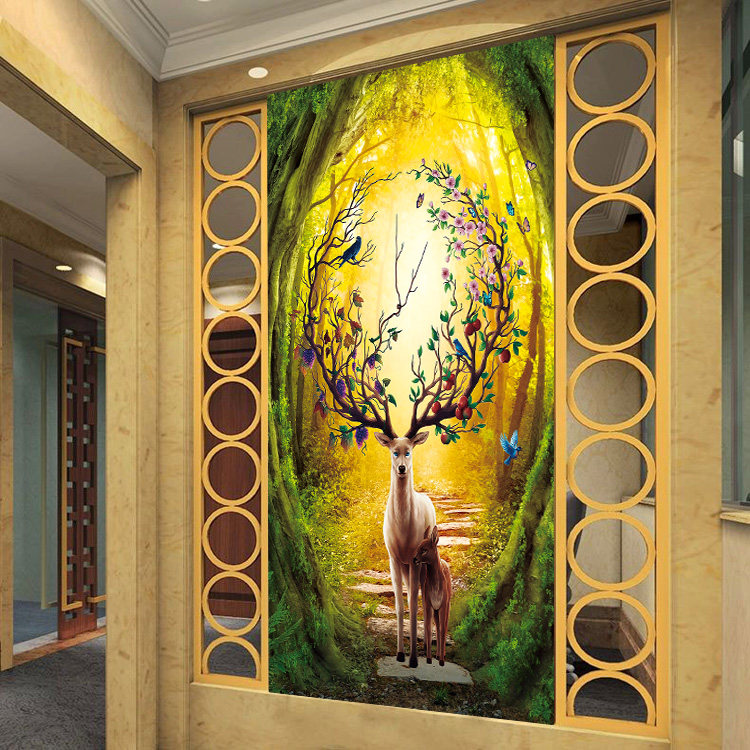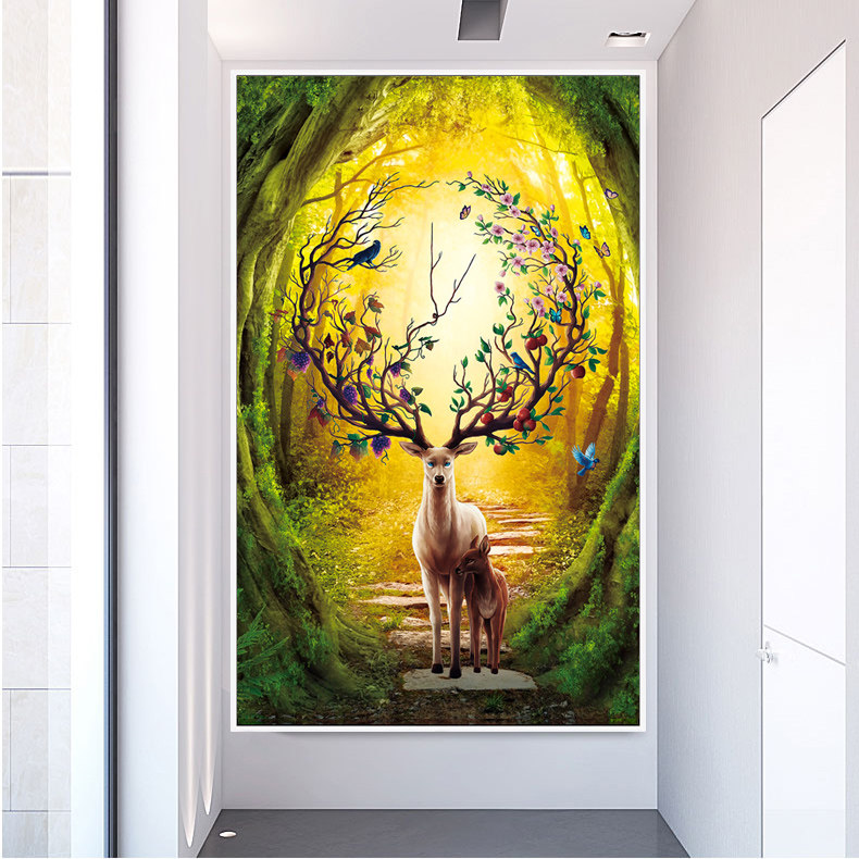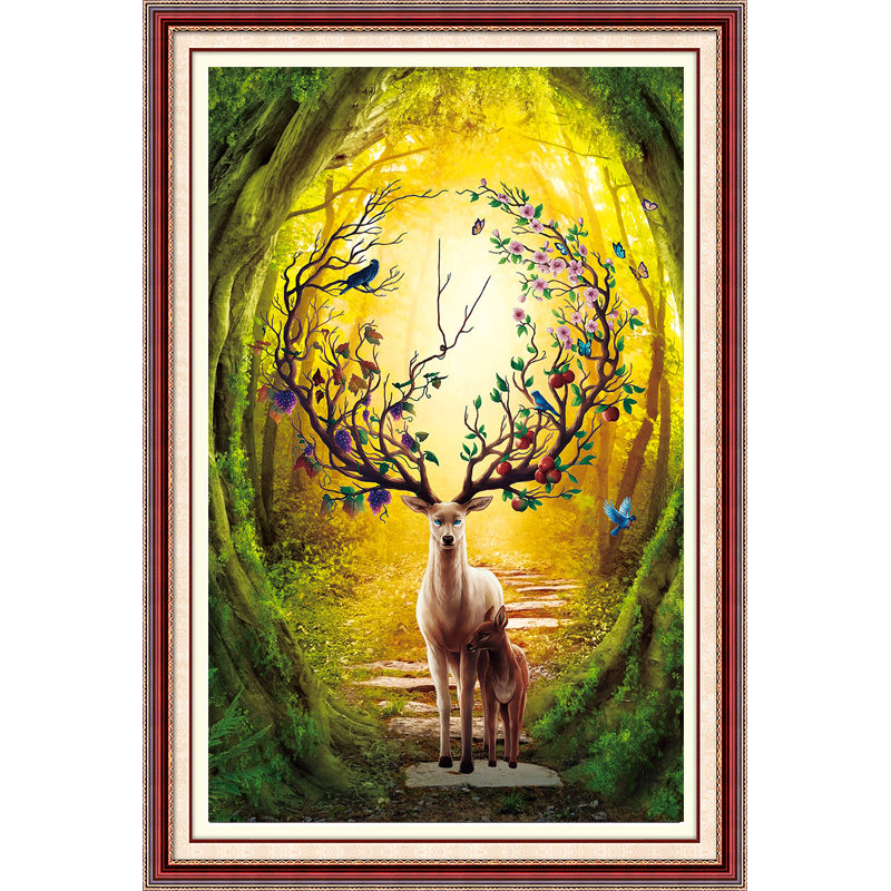 Printed 2020 new living room Cross embroidered thread embroidered brief modern hair and deer scenic vertical version Xuan Guan is greatly full of show