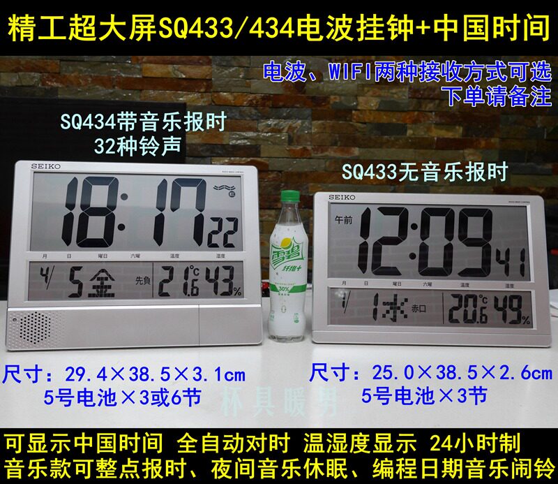 Japan SEIKO LCD large screen radio wave wall clock China WIFI smart digital alarm clock GPS time