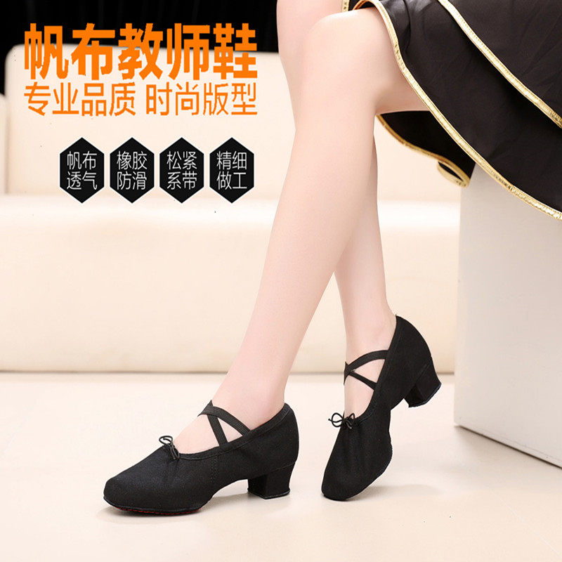 Red Pink Black & White Female Canvas Teacher Shoestring Heel Dance Shoes Soft-bottom Practice Shoes Folk Dance Yoga Belly Dance Shoes
