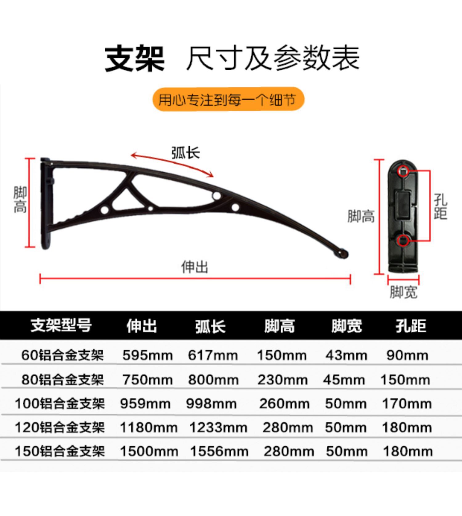 Extended 60* length 80CM aluminum alloy reinforced type The whole set is equipped with 2 brackets