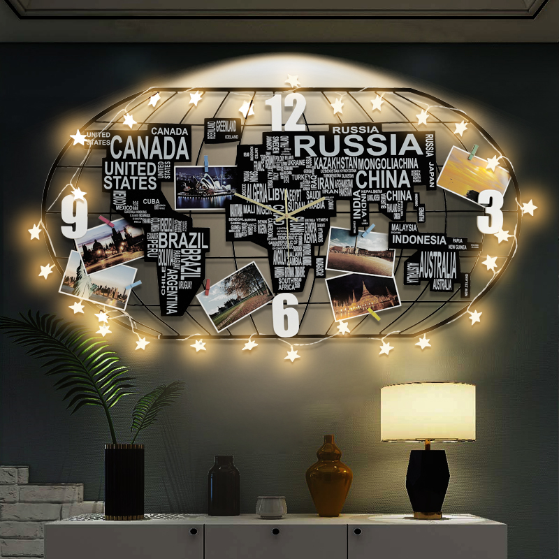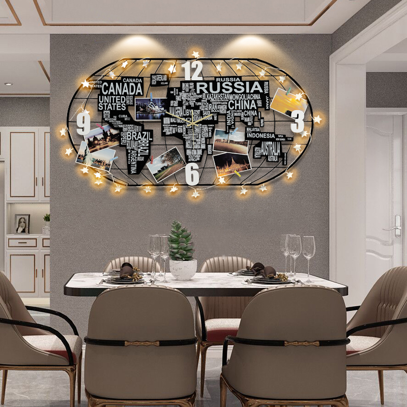 World Map Wall Clock Modern Simple Light Luxury Clock Home Wall Hanging Living Room Personality Creative Fashion Atmospheric Decoration