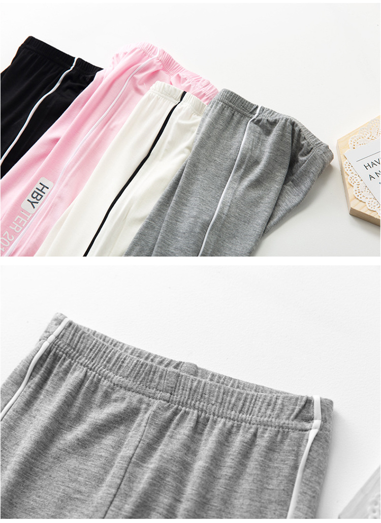 Summer male and female child letters printed 7 Sub-pants with pants girl's agaric edge embroidery on the bottom