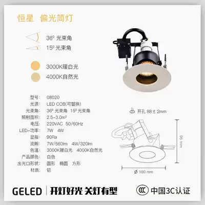 geLED Downlight LED ceiling light recessed hole lamp home bedroom anti-glare 7w4w anti-fog cob spotlight
