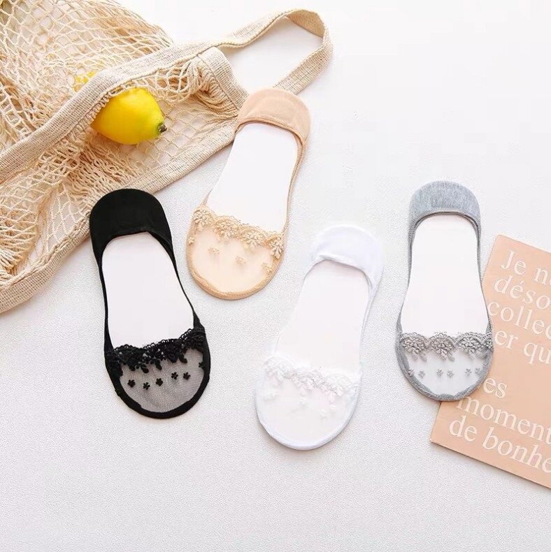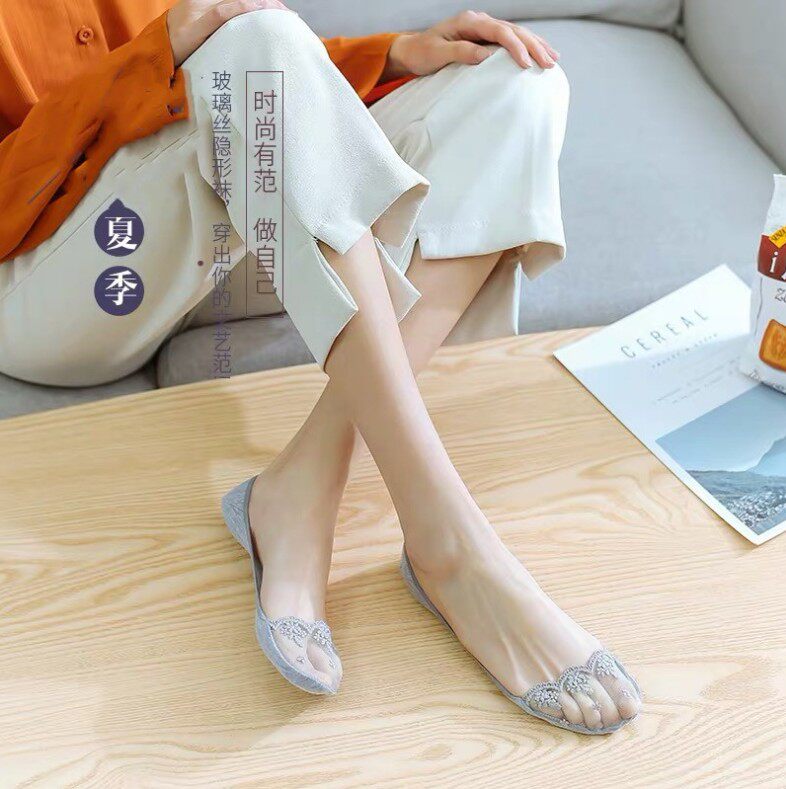 Invisible Socks Woman Full Invisible Lace half sole Shallow Mouth Ultra Slim Slim socks Socks Pure Cotton Bottom Silicone Anti Slip Ice Silk Summer