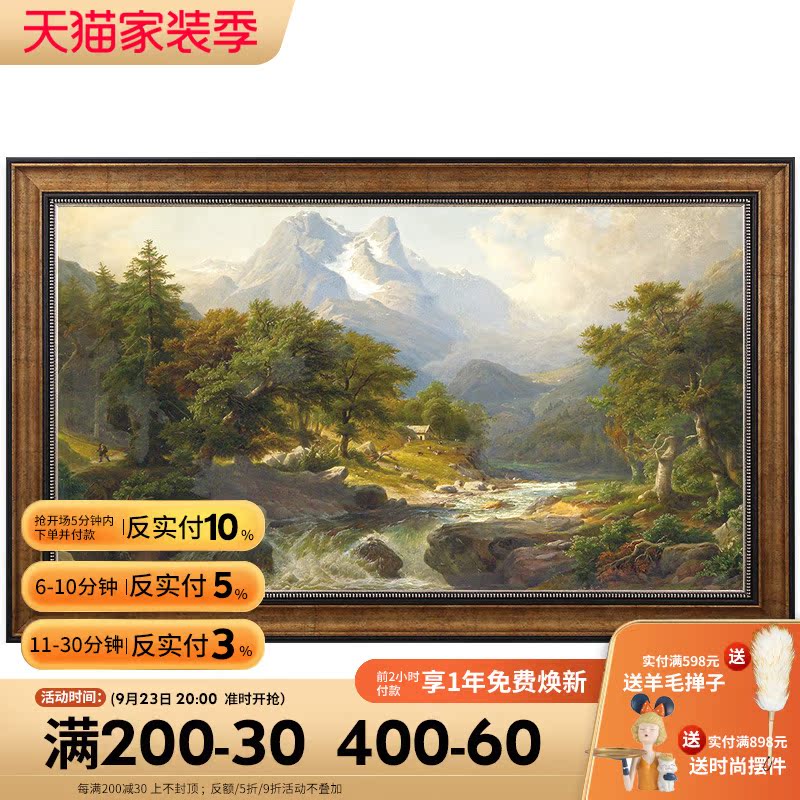 Nordic style living room decorative painting classical retro hanging painting landscape painting with dining room bedroom bedside painting large mural