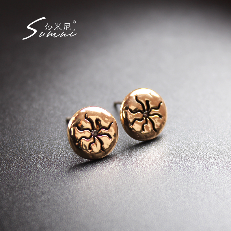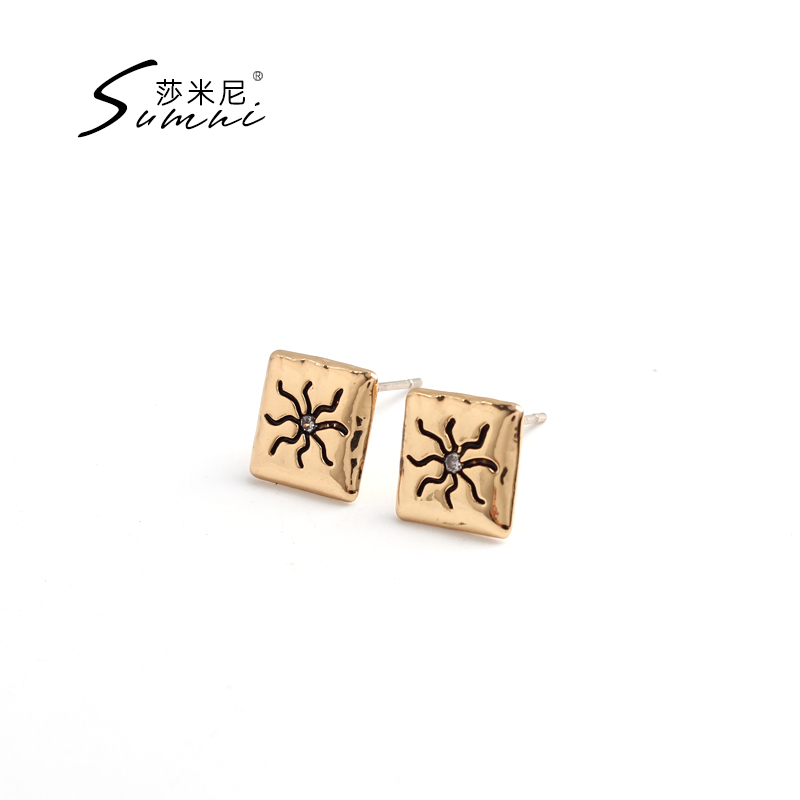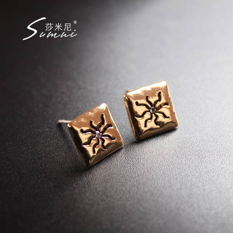 sumni Shamini European and American style ethnic pattern 18K gold 925 silver geometric square round ear pin female