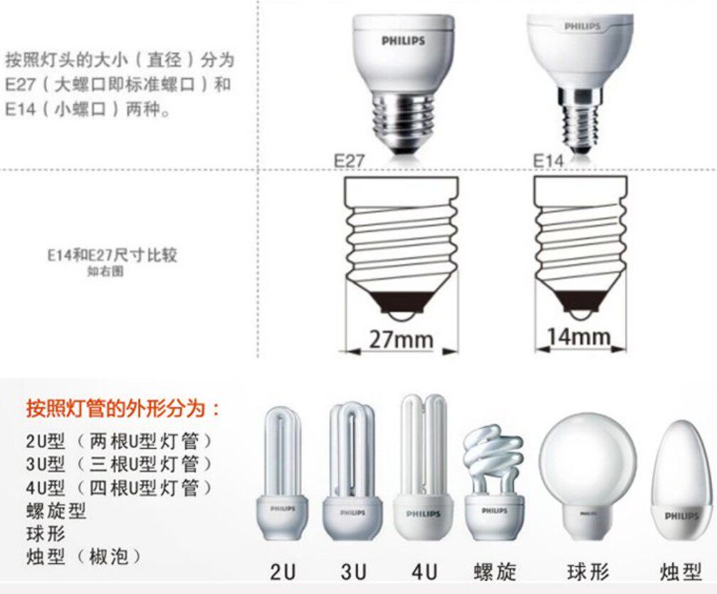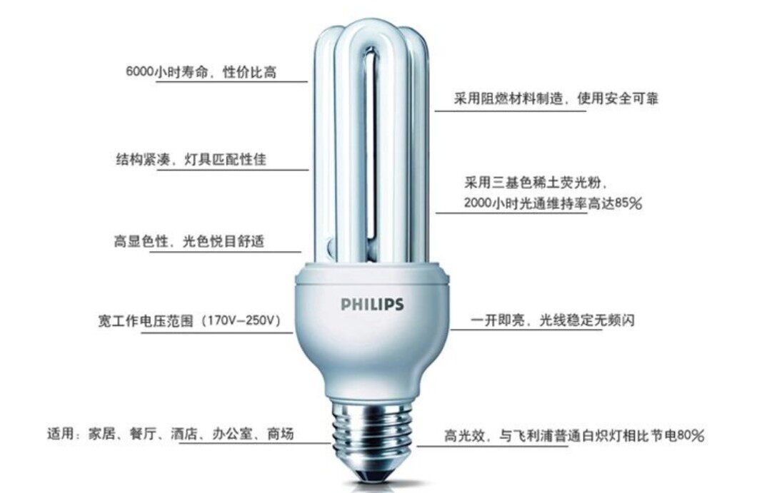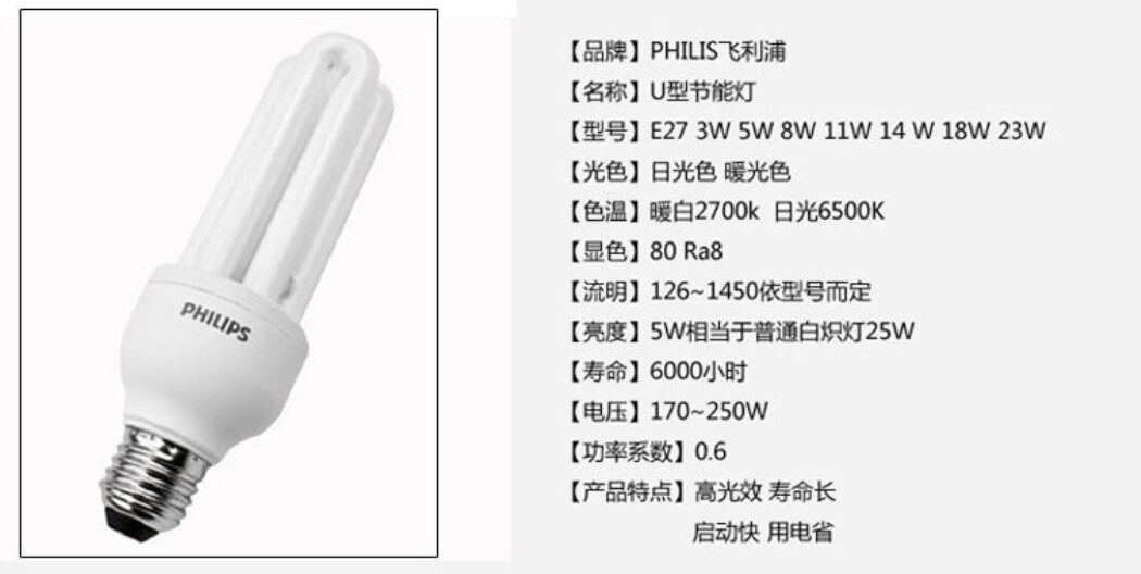 Philips Standard Energy Saving Lamp 2U 3U 5W 8W11W14W 18W23W Large Screw E27 White Light