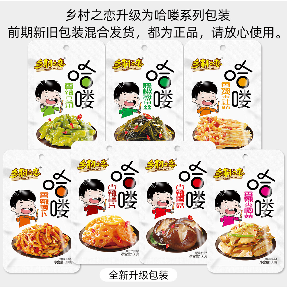 Country love spicy Pleurotus mushroom 30gx20 pack office snacks open bag ready-to-eat small package Hunan specialty