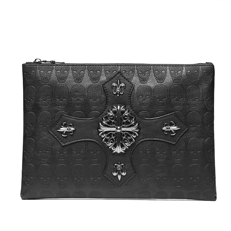 Hong Kong Tidal Ghost Head Genuine Leather Handbag Fashion Rivet Wrist Bag Han Edition Street Youth Men And Women Single Shoulder Bag