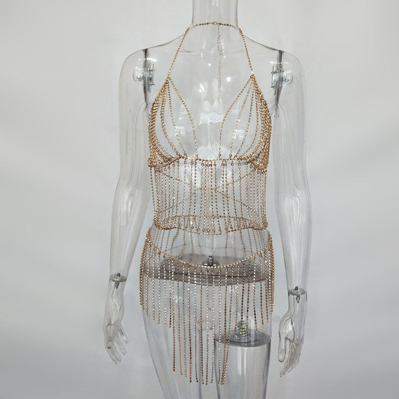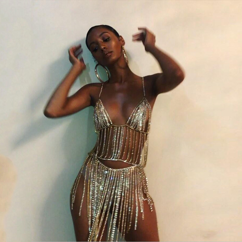 INS Stage Performance Dance Sexy Nightclub Hanging neck streaming Su Liang Bra Skirt Suit