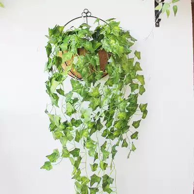 Simulation green leaf wall decoration flower wall hanging flower basket hanging small basket living room wall decoration fake golden kudzu plant