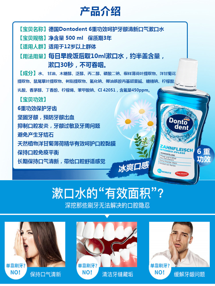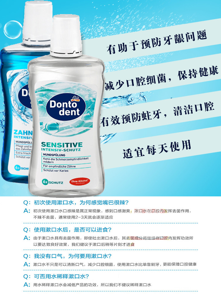 German imports Dontorent with fluorine full effect anti-moth antibacterial gum care Anti-proof adult mouthwash 500ml