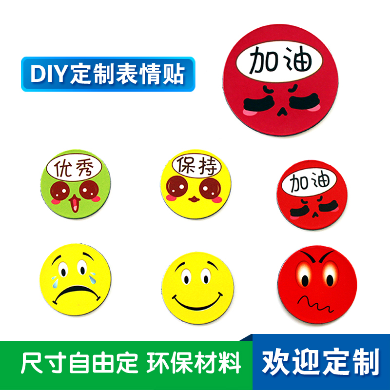 Round emoticon stickers custom smiley face stickers children's cartoon magnetic stickers creative soft magnetic 30mm customizable magnetic whiteboard stickers