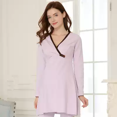 Pregnant women nursing night dress Dress postpartum cotton lining nursing clothes top long-sleeved pajamas nursing home clothes