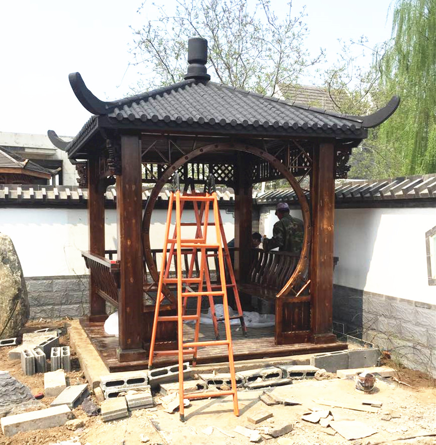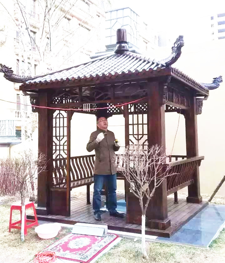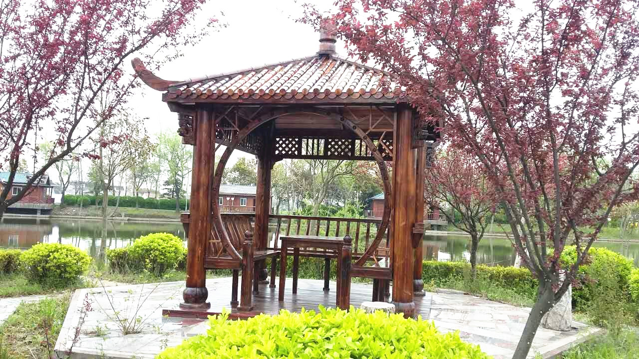 Outdoor solid wood antique carbonized wood anticorrosive wood camphor pine landscape four corner pavilion park courtyard balcony wooden pavilion