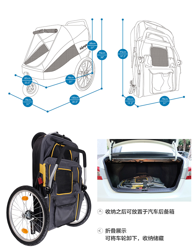 Large dog pet cart Ibiyaya Ibiyaya FS2180 golden bus golden retriever out walking cart