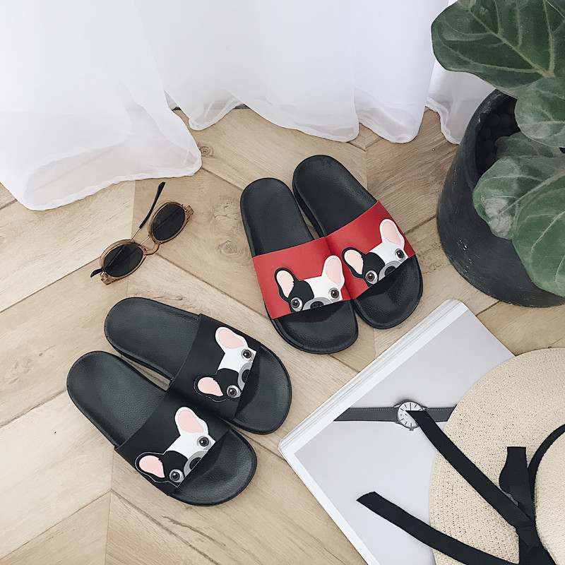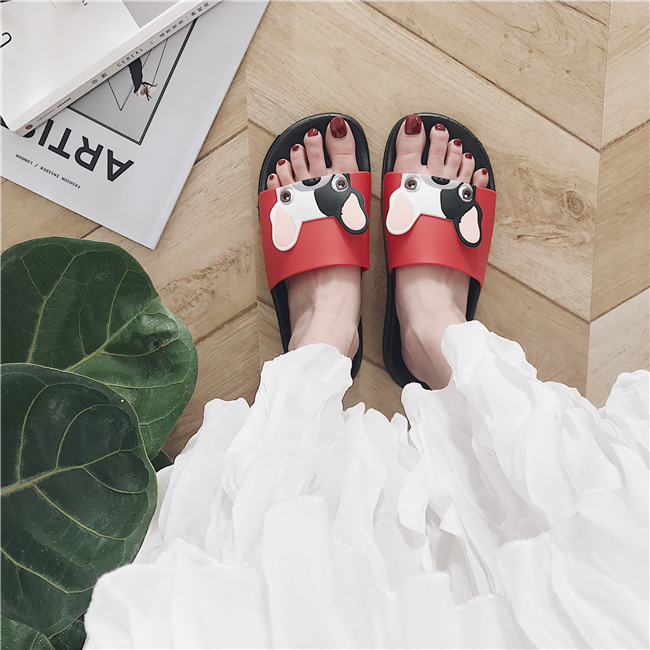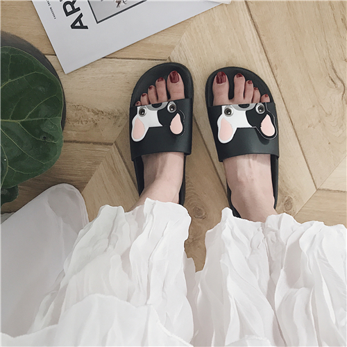 Slippers women Summer Korean version cute cartoon Fatou small dogs anti-slip outdoor wearing lined sandals beach shoe tides