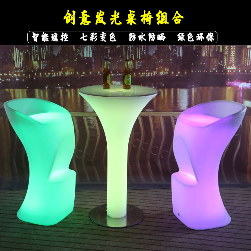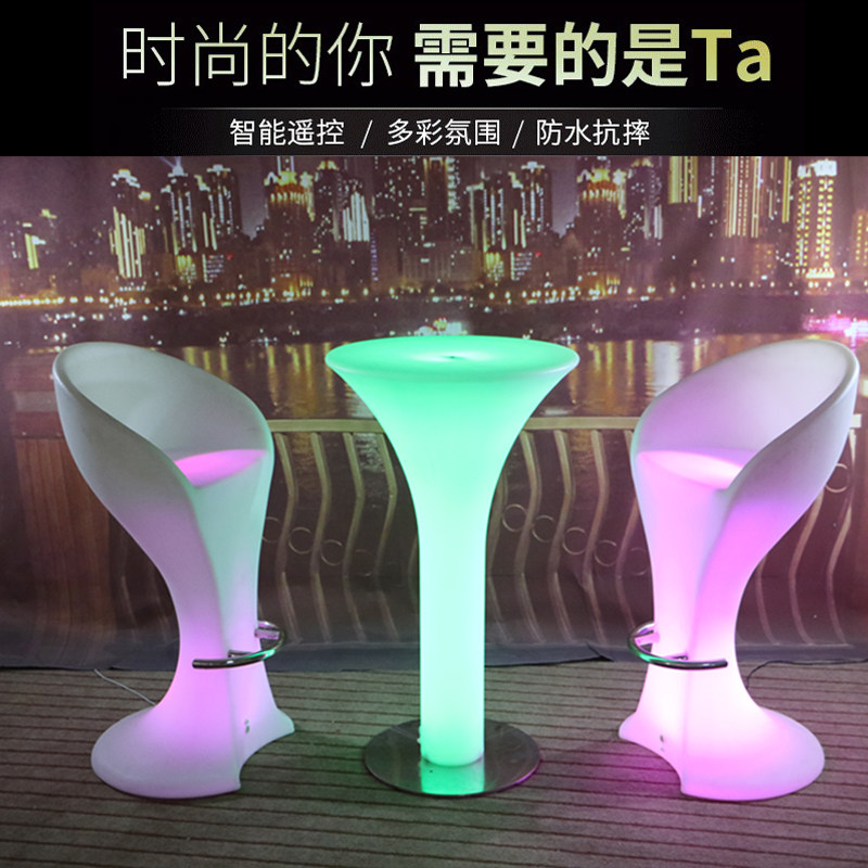 Minimalist LED luminous bar Round Table Home Mall Café Lounge Area High Foot Table And Chairs Outdoor Bar Furniture
