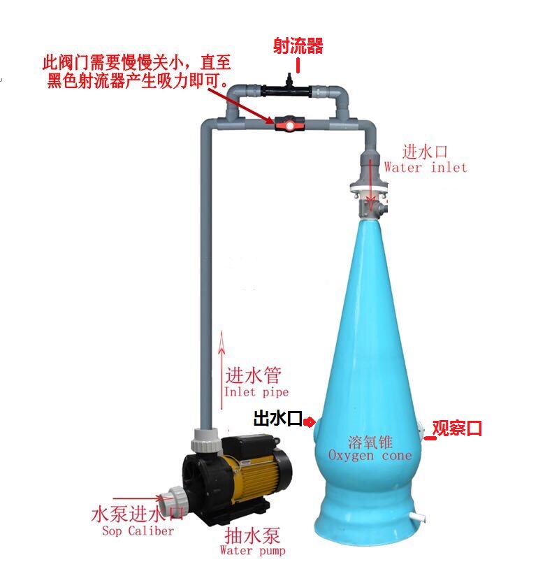 Aquaculture dissolved oxygen cone fish pond aerating high efficiency equipment Circulating water aerating Aquarium oxygen mixer pressure cylinder