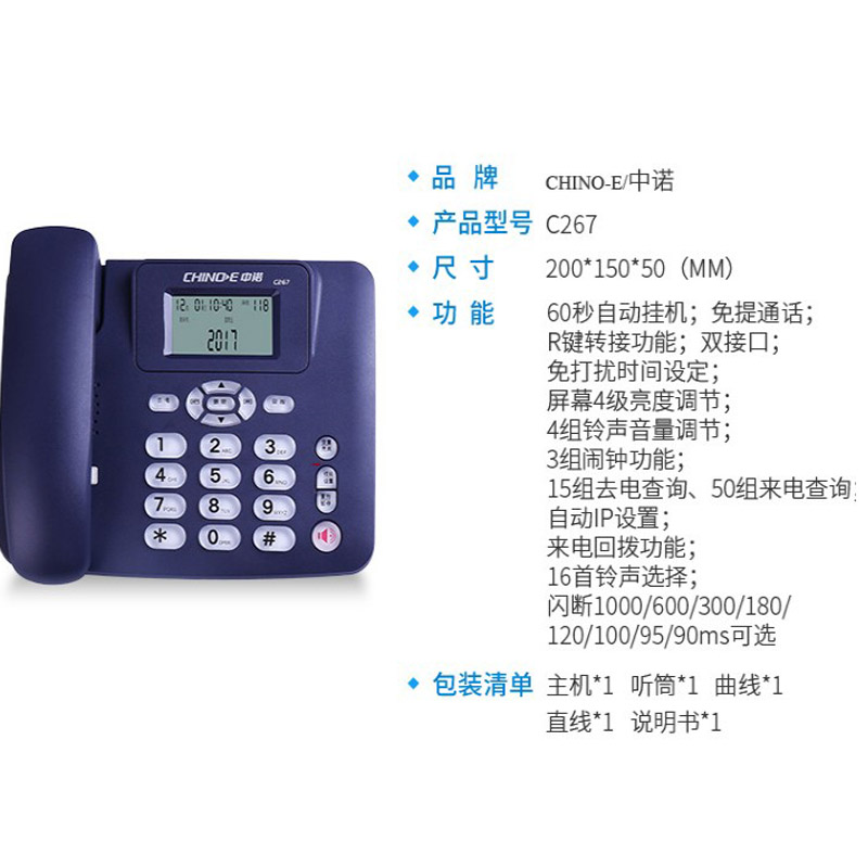 Sino cable C267 fixed telephone machine hands-free wall-mounted office desk stand-alone caller ID display battery-free