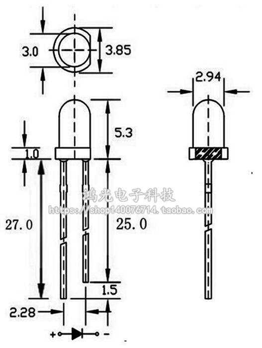 3MM red hair red light emitting diode red bright LED light pearl long foot F3 red reddish red red light