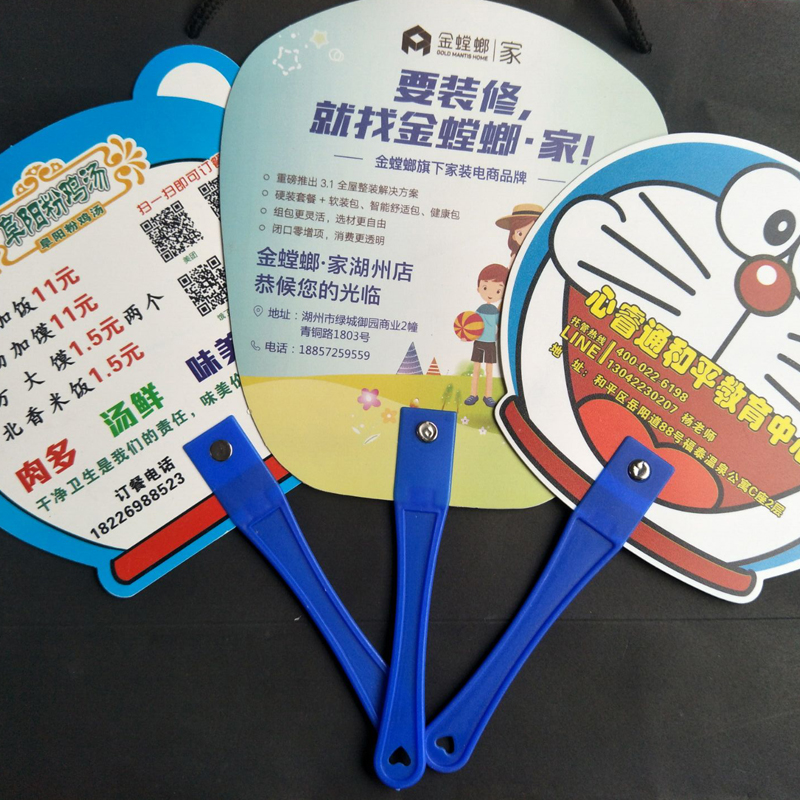Advertising Scallop PP Plastic Custom Ad Cartoon Small Fan Custom Set Making Group Fan Profiled Propaganda Fan Free design