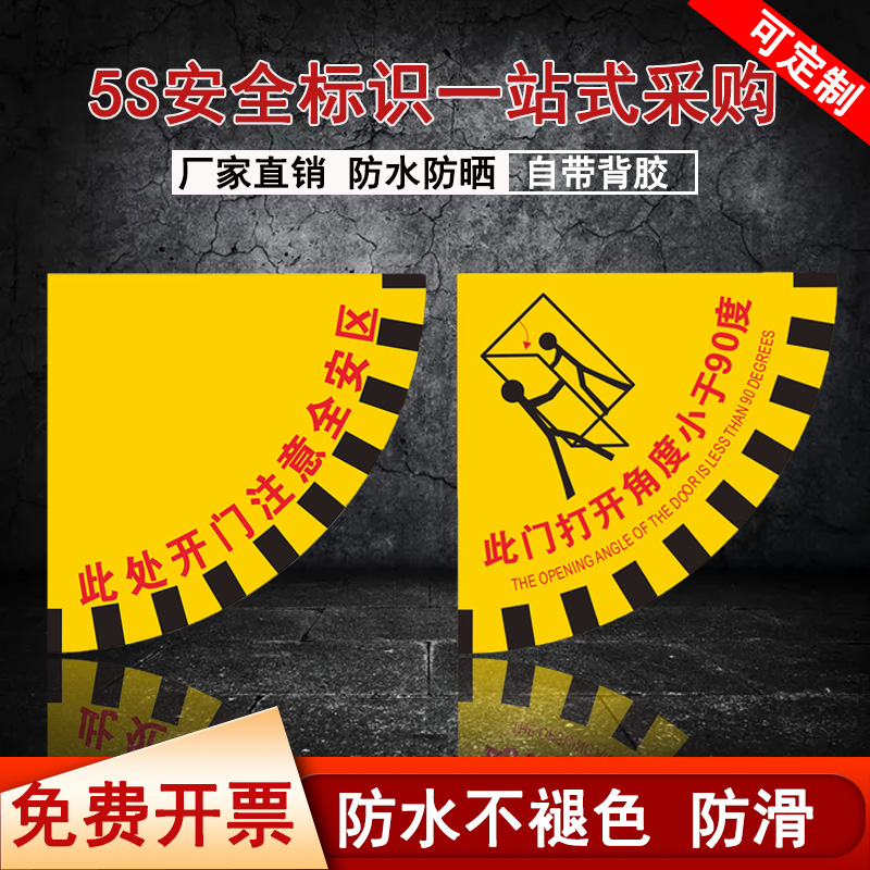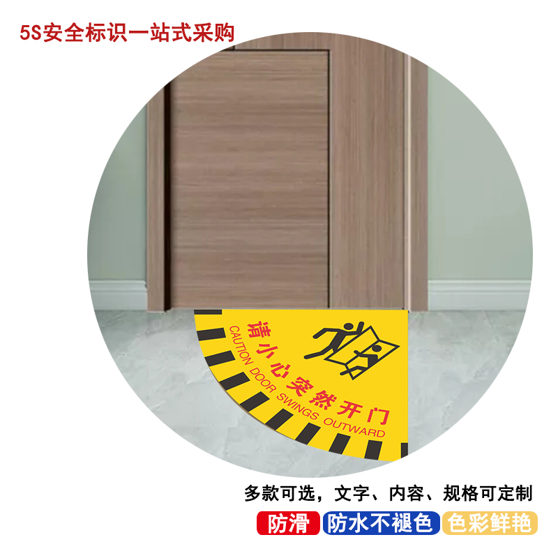 Please be careful to open the door suddenly Floor stickers waterproof logo stickers Indoor fan-shaped beware of opening the door wear-resistant PVC floor stickers Safety warning stickers in and out please close the door at will Warm notice stickers custom