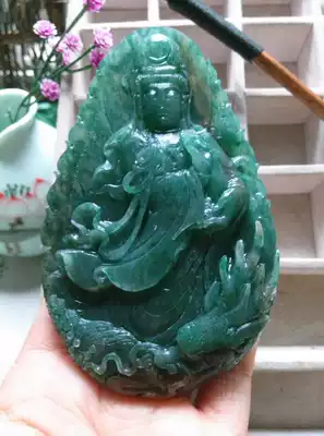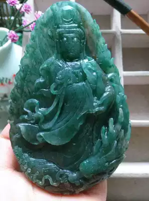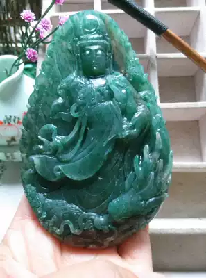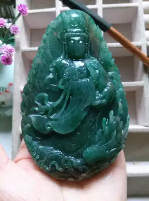 Dushan Jade old material ice through the green and spicy green atmosphere boutique high-grade Bodhisattva Guanyin pendant hand-carved collectibles