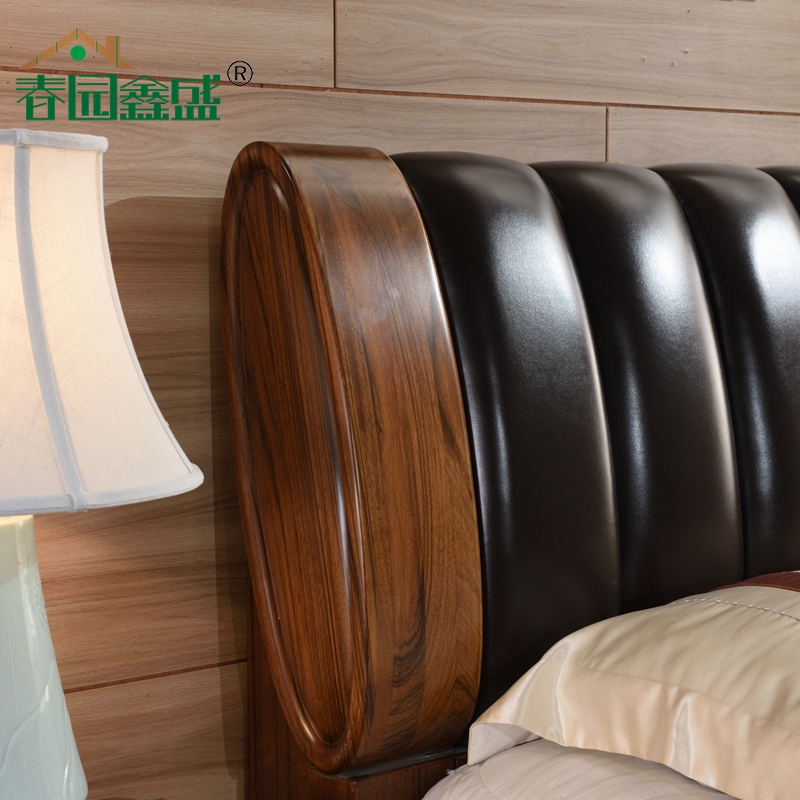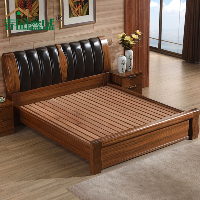 All solid wood ebony wood bed leather 1 8m double thick re-Chinese style bedroom furniture