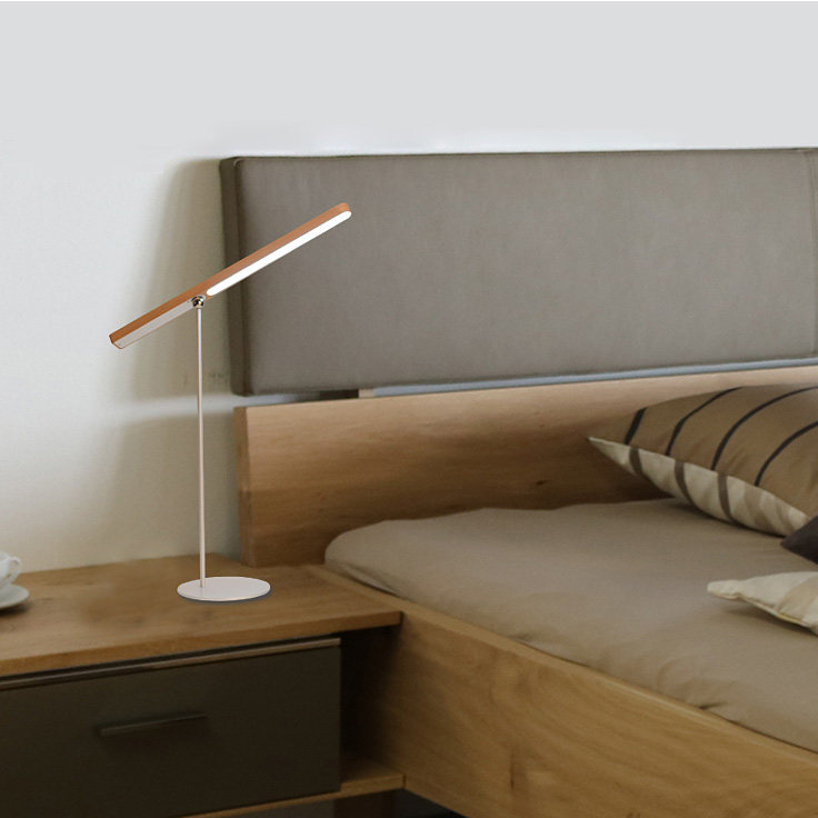 There are wooden table lamp Nordic Japanese simple bedside lamp rechargeable desk adjustable light eye protection bedroom solid wood students
