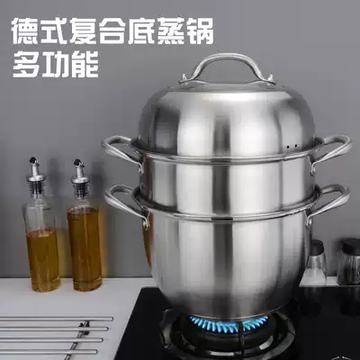 Steamer 304 stainless steel three-layer thick household multi-layer steamed buns compound bottom thick steamed fish steamed buns Steamed buns steamer