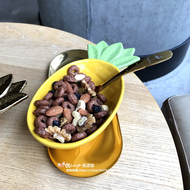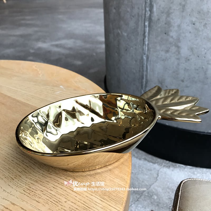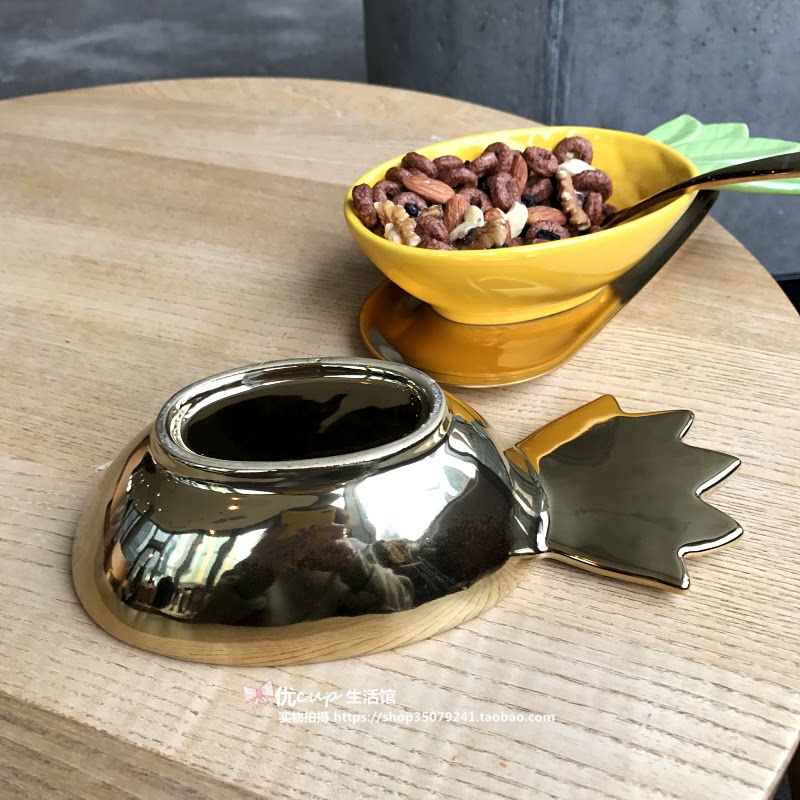 Douyin Nordic light luxury gilded pineapple ceramic bowl cute fruit dessert snack bowl food photography photo props