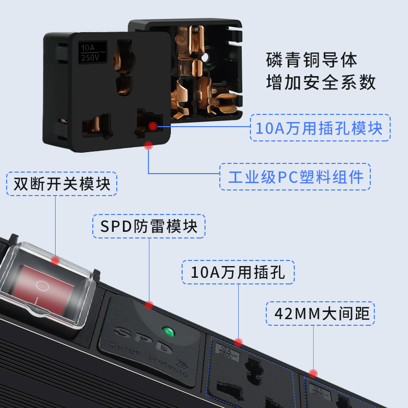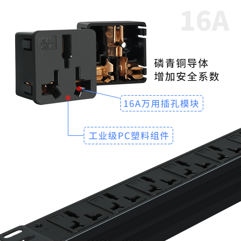 Toten 10A8-hole universal PDU power outlet Lightning protection socket overload protection power board 10A10-hole 16A8-hole
