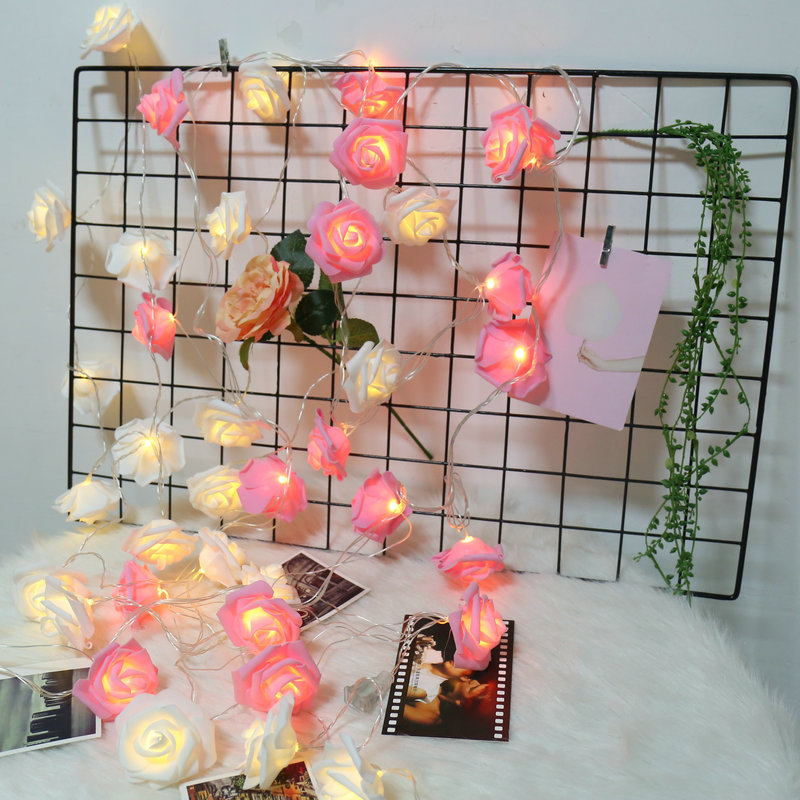 Rose LED Light String Wedding Room Bedroom Romantic Hanging Lights Marriage Proposal Small Colored Lights Battery String Lights Decorative Lights