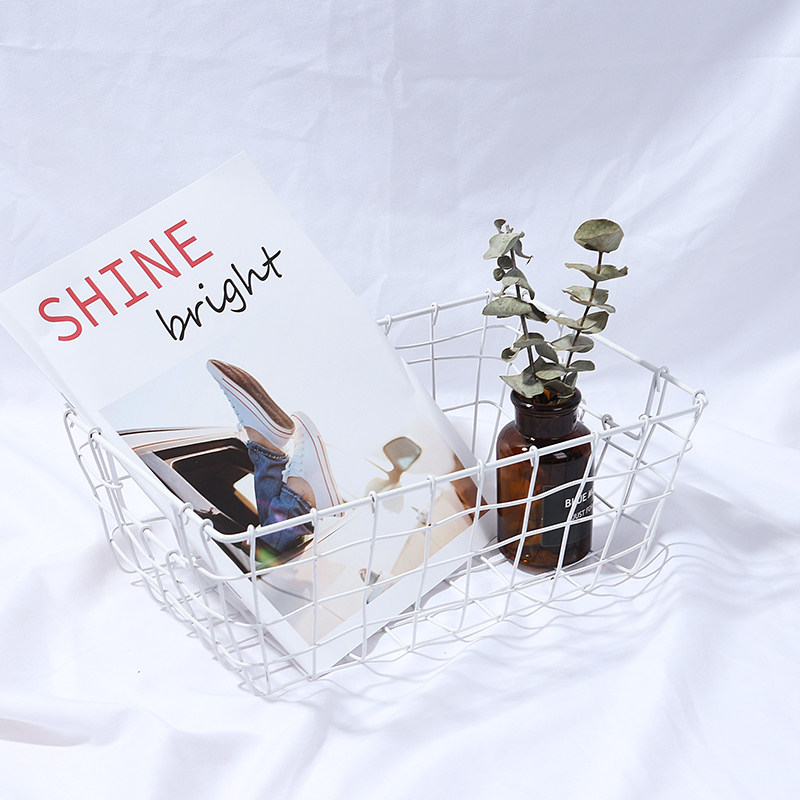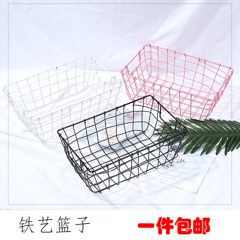Nordic chic minimalist wrought iron grid basket storage blue photo props ins shoes bag cosmetics photography props