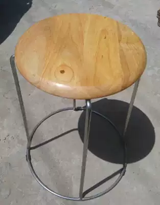 Oak round stool, steel bar stool, solid wood sitting surface, casual adult simple round stool, stainless steel table and stool Assembly