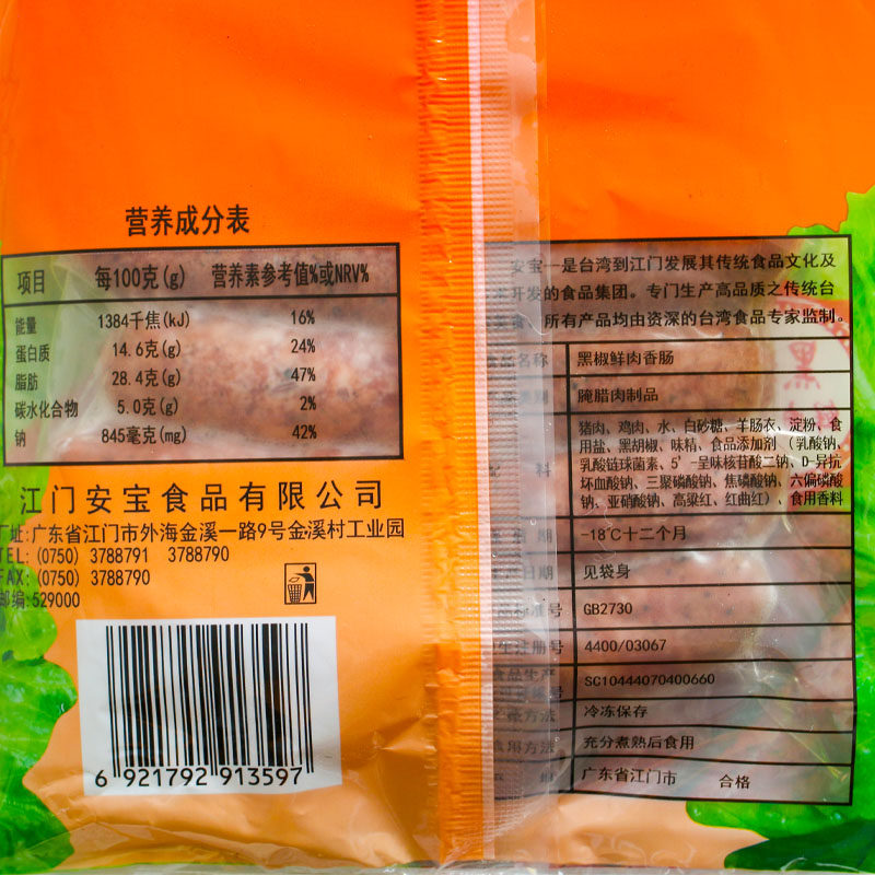 Encore black pepper sausage black pepper flavor sausage rich sausage breakfast sausage western restaurant frozen semi-finished product 250g 7 pieces