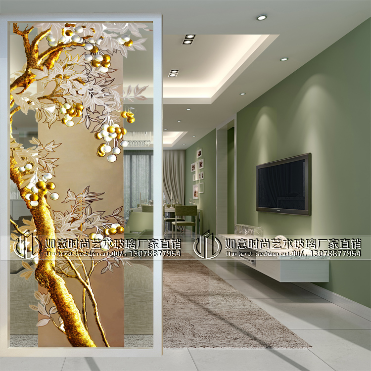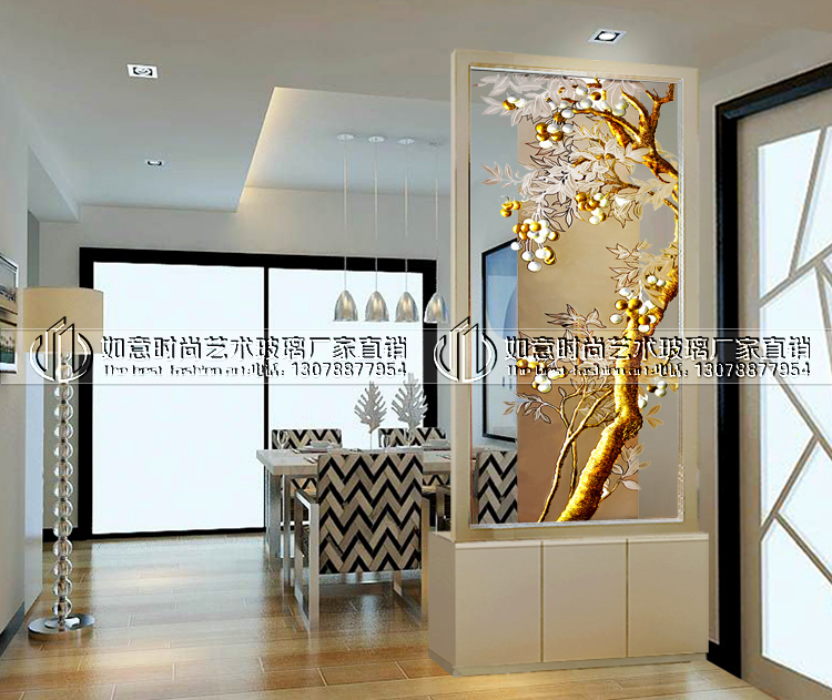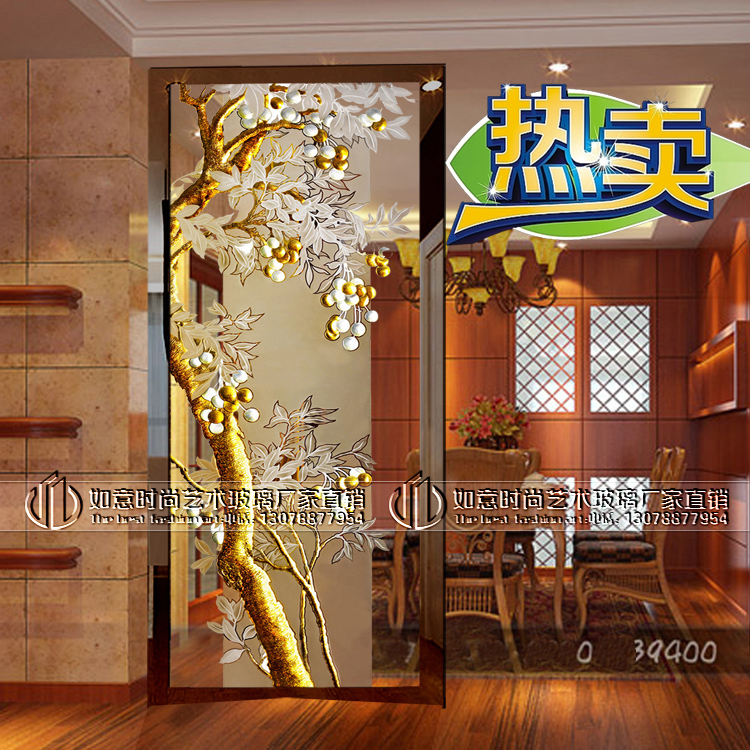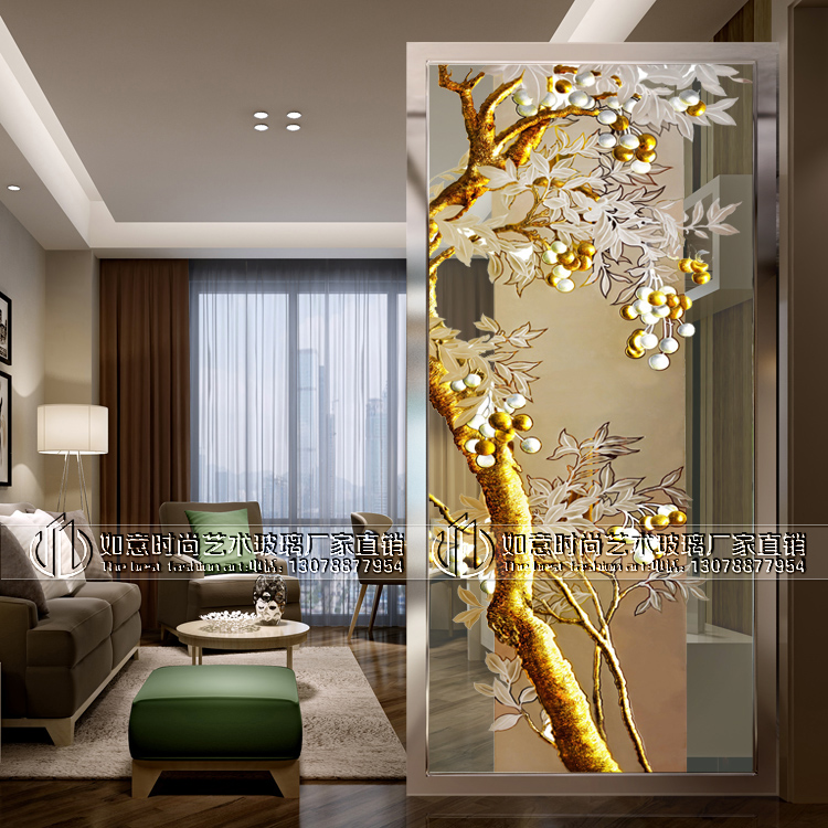 Modern minimalist art glass screen partition living room aisle porch dining room background wall carved tempered fortune tree